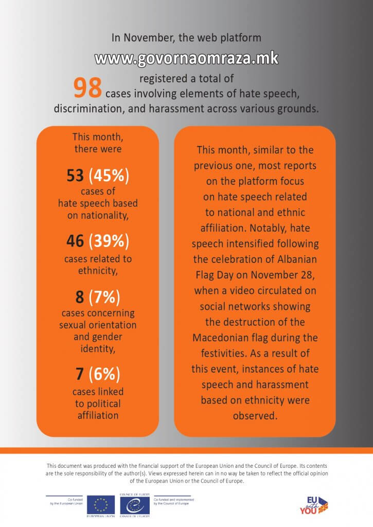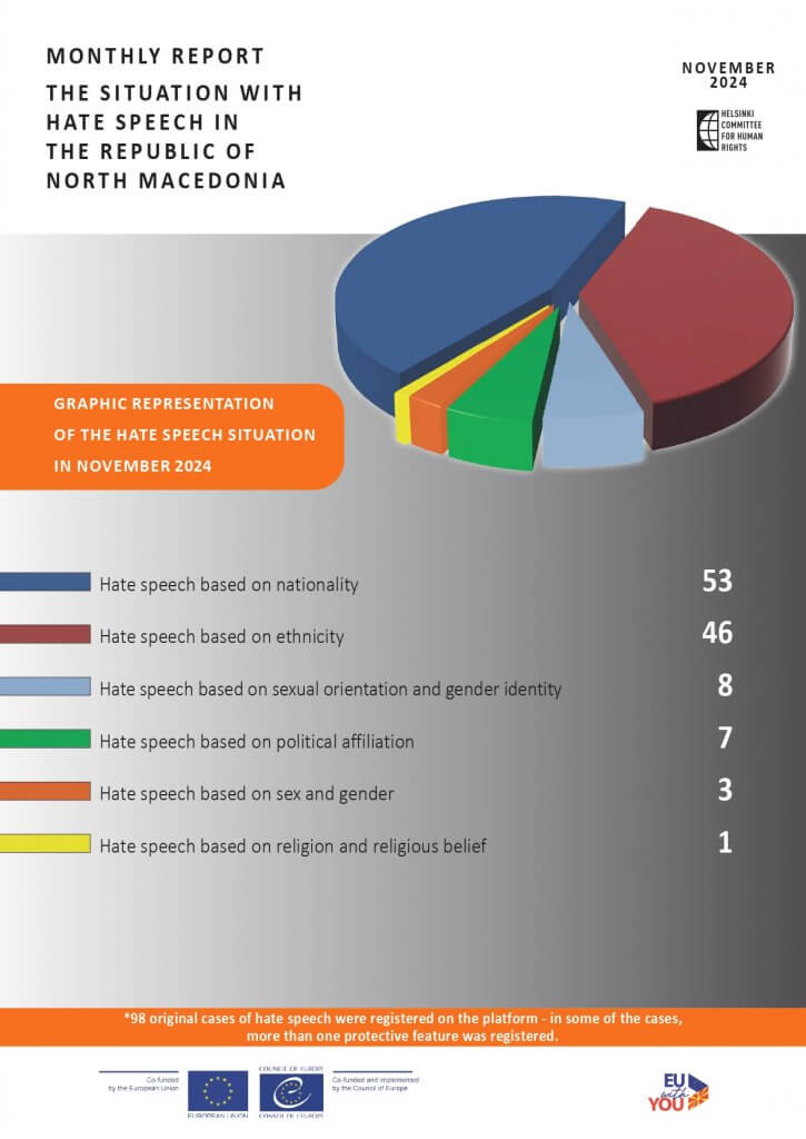 MONTHLY REPORT: THE HATE SPEECH SITUATION – November, 2024 January 24, 2025 Documents MONTHLY REPORT: THE HATE SPEECH SITUATION – November, 2024 Share this post Share on Facebook Share on X Share on LinkedIn Share via e-mail Latest posted in Special Report Monitoring of the actions of the KSZD on the protection of women from marginalized communities from discrimination – Monitoring period 01.07.2025 to 30.09.2025 December 5, 2025 The Situation with Hate Speech in the First Half of 2025 September 29, 2025 Strengthening the capacities of police officers to act in cases of hate speech September 25, 2025